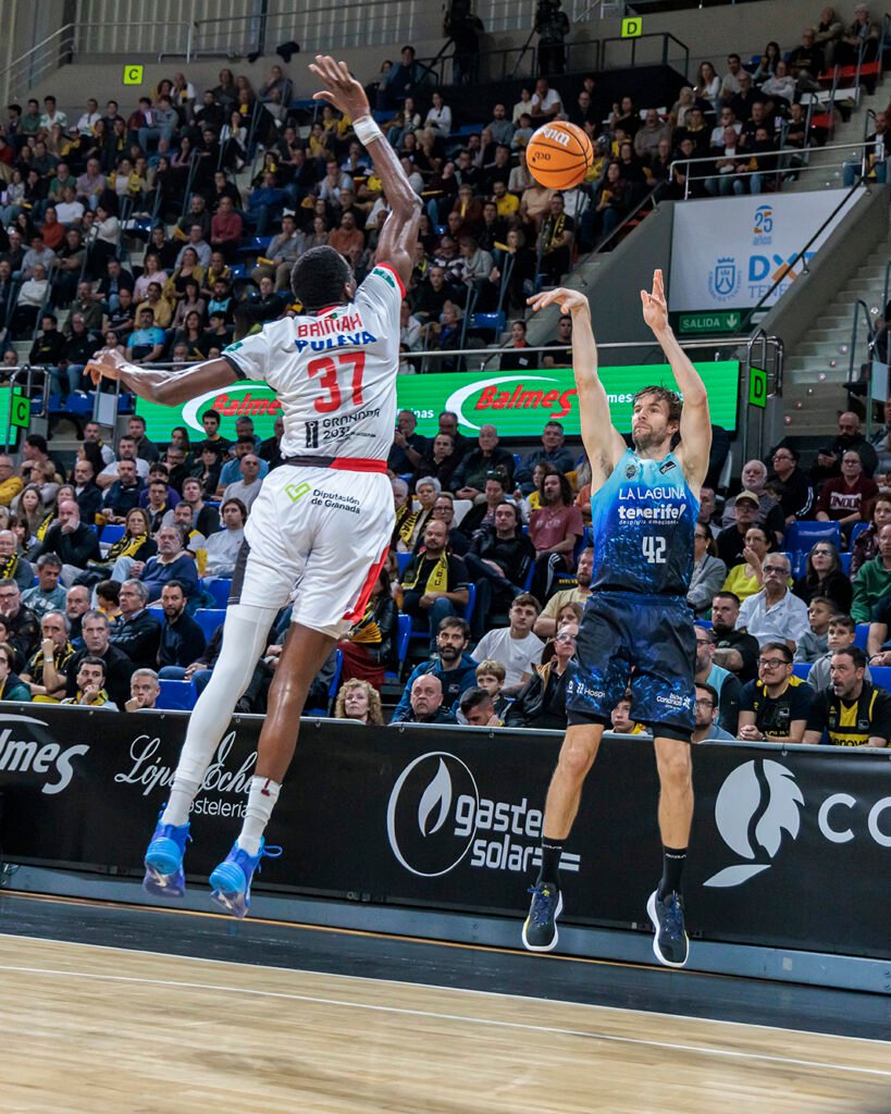 Sin embargo, el Granada fue con todo a por la victoria. Con Luka Bozic omnipresente en ataque, haciendo daño al poste bajo y muchas veces tratando de ahogar en defensa la subida de balón de Huertas; igual que ocurriera con varios de sus hombres altos en situaciones de cambio con los manejadores aurinegros, el Covirán se agarraba al partido desde el tiro libre; mientras que La Laguna Tenerife sufría para mantener sus opciones (70-71, min. 36).