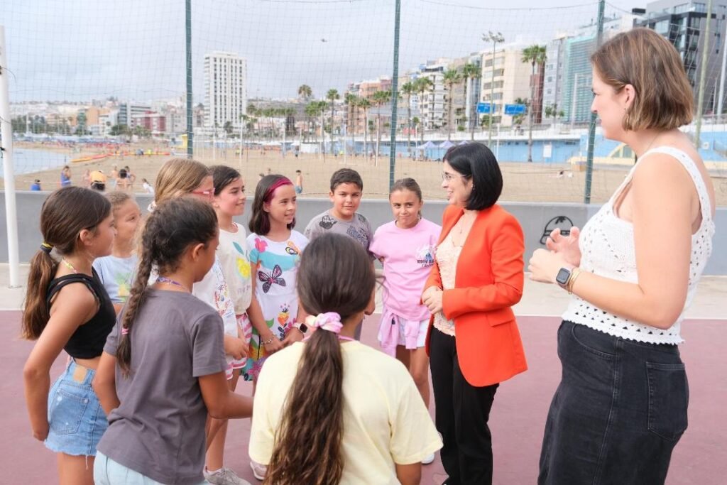 La alcaldesa de Las Palmas de Gran Canaria, Carolina Darias, ha visitado este miércoles el Campus de Verano del Instituto Municipal para la Promoción de la Actividad Física y el Deporte (IMD) en la playa de Las Alcaravaneras, una de las seis sedes en las que el Ayuntamiento desarrolla esta iniciativa dirigida a niños y niñas de entre 4 y 14 años.