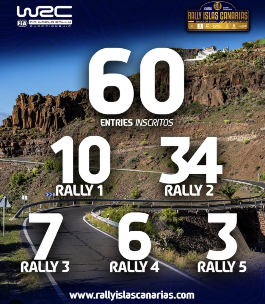 El 50º aniversario del Rally Islas Canarias – Rally de España va a contar con una participación espectacular, de lo más nutrida, compuesta por un total de 60 vehículos que serán partícipes de la segunda prueba mundialista en la historia del Archipiélago.