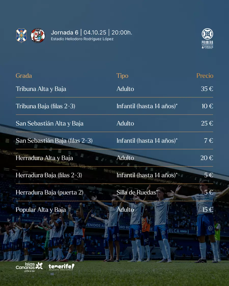 • Sábado (4/10): desde las 10:00 y hasta el comienzo del partido (CD Tenerife – Zamora CF), ininterrumpidamente.