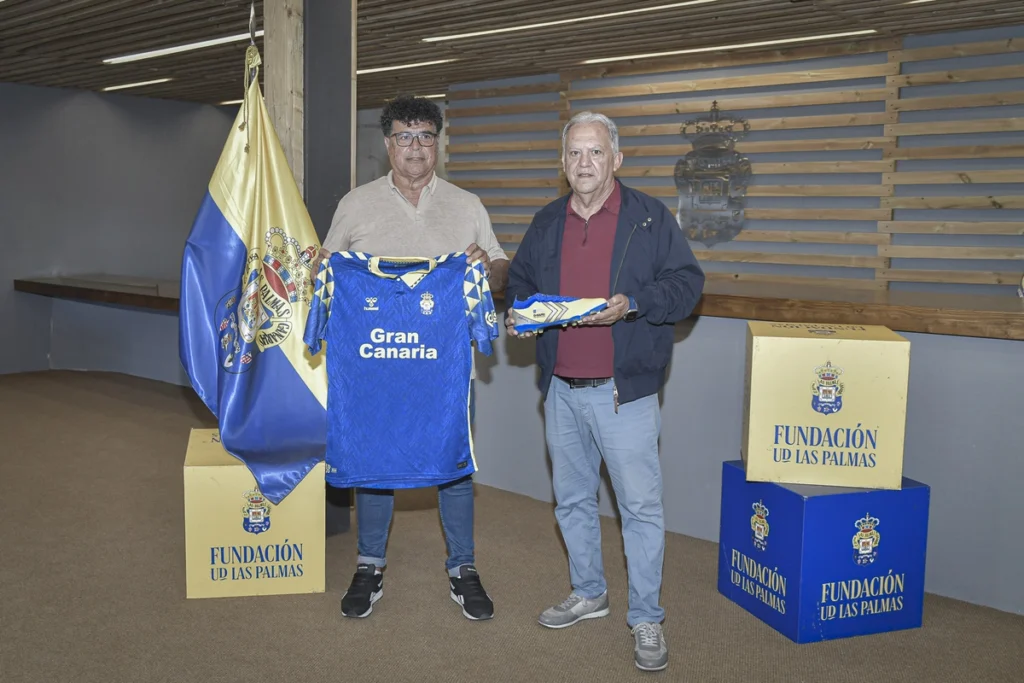 La Fundación Canaria UD Las Palmas entrega material deportivo al CD Playa del Hombre Recogió el material su presidente Antonio Macías García.