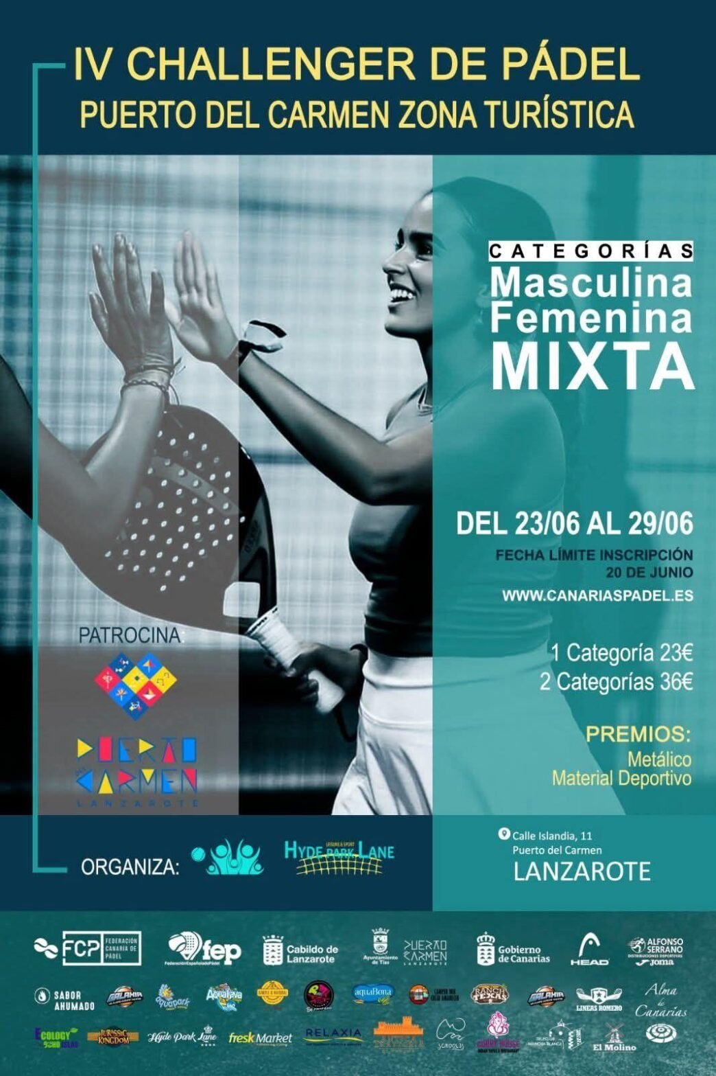 El Club de Pádel Hyde Park Lane Leisure & Sport anuncia la celebración de la cuarta edición del Challenger Puerto del Carmen Zona Turística, un evento deportivo ya consolidado en el calendario regional, que tendrá lugar del 23 al 29 de junio en las instalaciones del club, ubicadas en Puerto del Carmen.