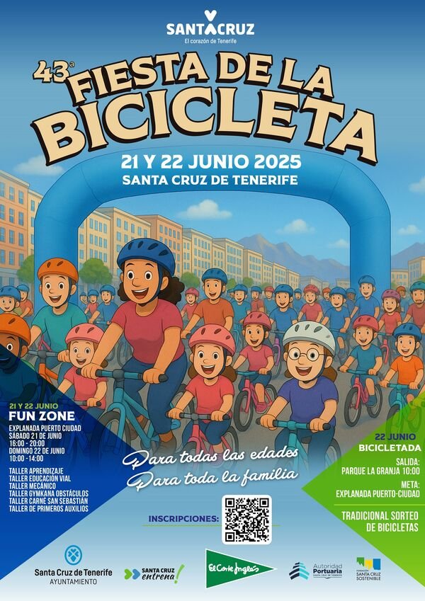 Te Invitamos a celebrar con familia y amigos la “43ª Fiesta de la Bicicleta de Santa Cruz de Tenerife”. El evento se celebrará en dos actos: